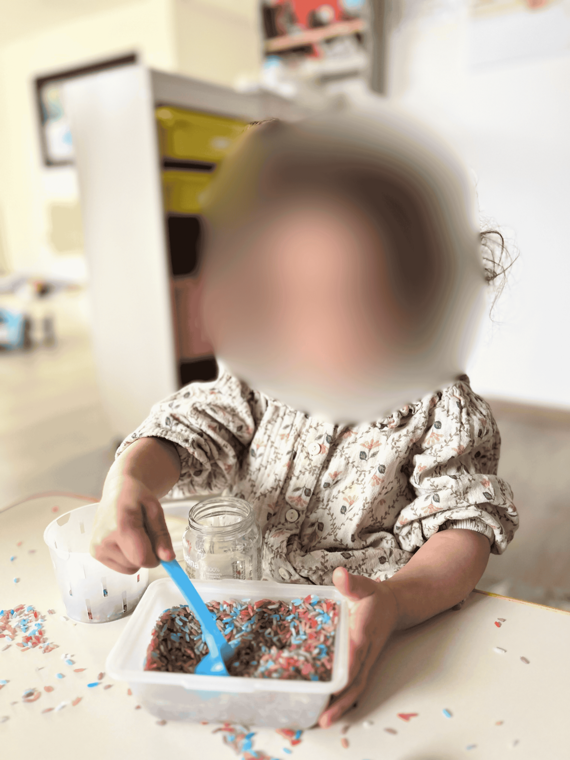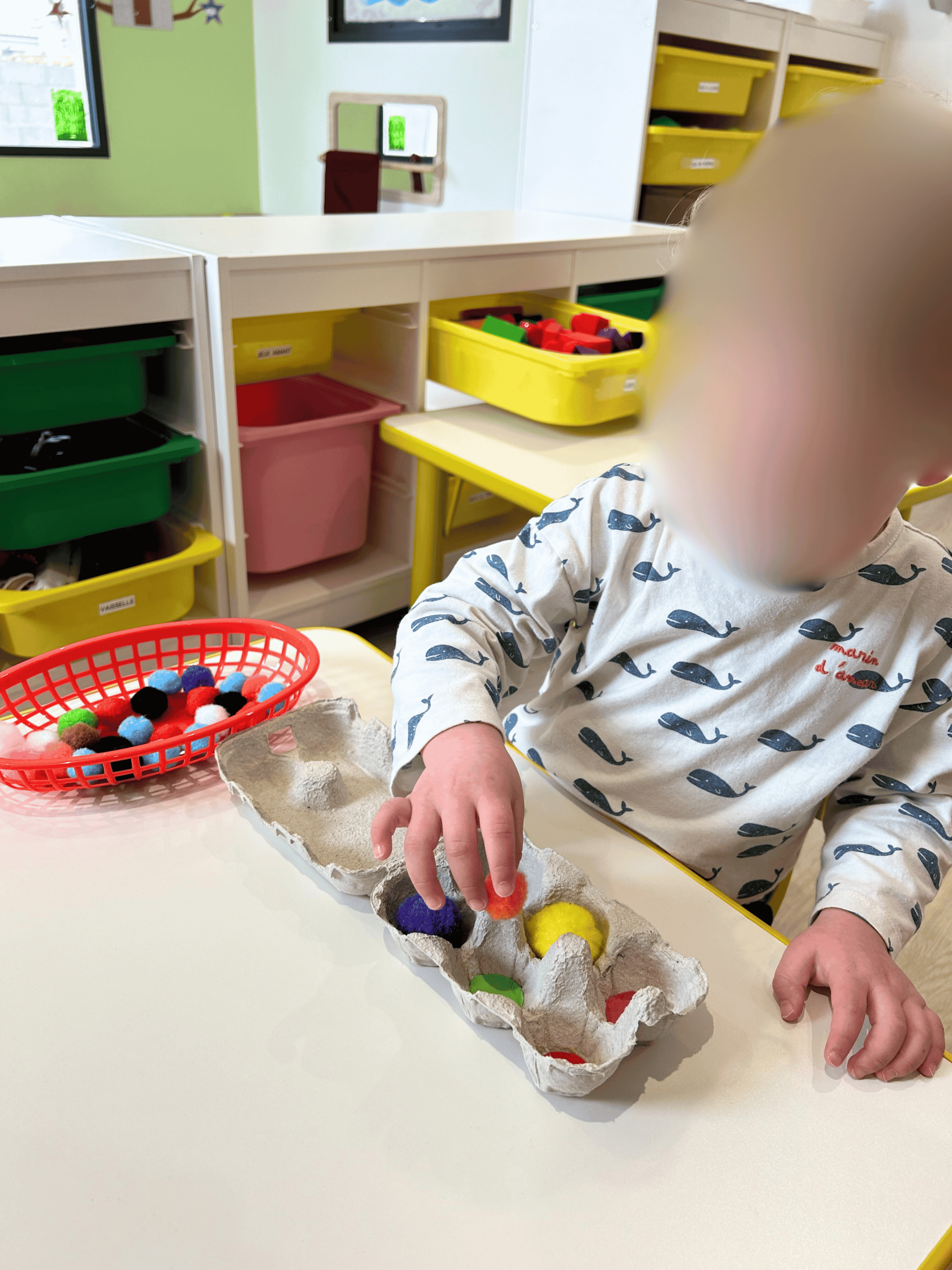 Ateliers Dominos, Transvasement, Pompons, Planche sensorielle